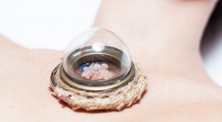 Deze persoonlijke bioreactor in de vorm van een prachtige hanger draagt u tussen de sleutelbeenderen. Na drie maanden zal een klein, uit uw eigen cellen gekweekt mediallon groeien in de bioreactor, bestaand uit spierweefsel gevoed door uw bloedtoevoer. Kweek me! is een moderne en charmante versie van het eeuwenoude ritueel van kannibalisme. Samen gegeten met … Meer lezen over Kweek Me! liefdesmedaillon