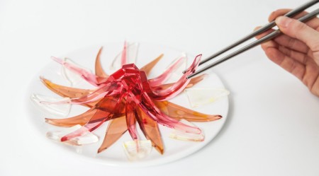 Deze sashimi is gekweekt zonder de bloedvaten, zenuwen of organen, waardoor een bijna onzichtbaar stukje vlees ontstaat met een pure, delicate smaak. De traditioneel gepresenteerde transparante fugu sashimi werd ontwikkeld uit de malse blauwvintonijn, maar is nog vetter en smakelijker dan de echte vis. Daarnaast helpt het kweken van deze sashimi overbevissing van deze bedreigde … Meer lezen over Transparante Sashimi